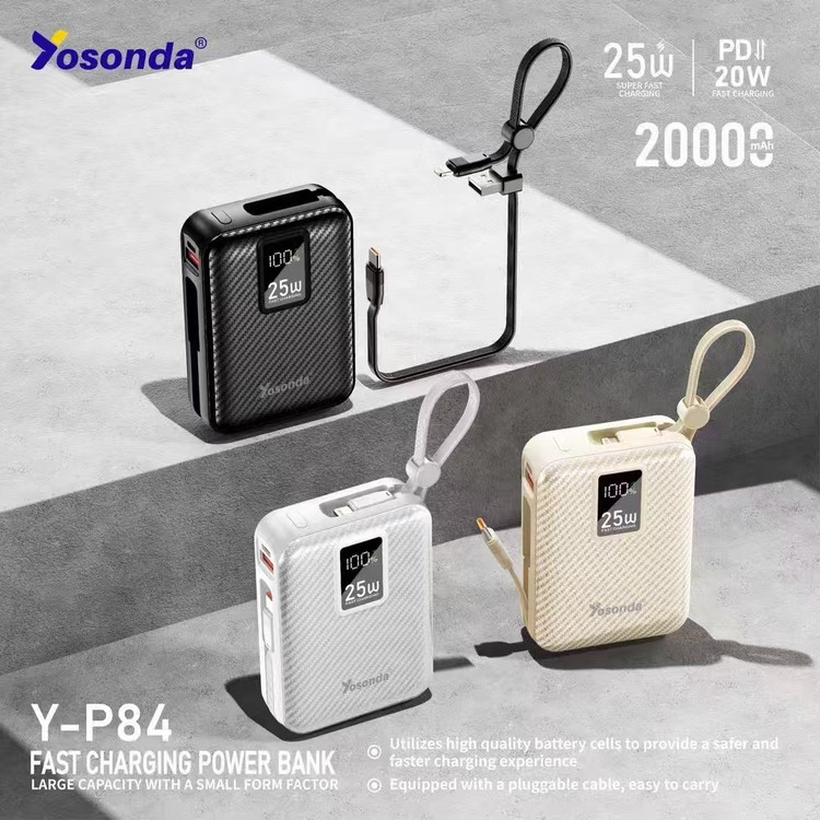 پاوربانک یوسوندا (Yosonda) مدل YP84 ظرفیت 20000 میلیآمپر یک انتخاب اقتصادی و کاربردی برای افرادی است که به شارژ مطمئن و همراه در طول روز نیاز دارند. این پاوربانک با ظرفیت واقعی 20000mAh امکان چندین بار شارژ انواع گوشیهای هوشمند، هندزفری، ساعت هوشمند و سایر گجتهای دیجیتال را فراهم میکند.