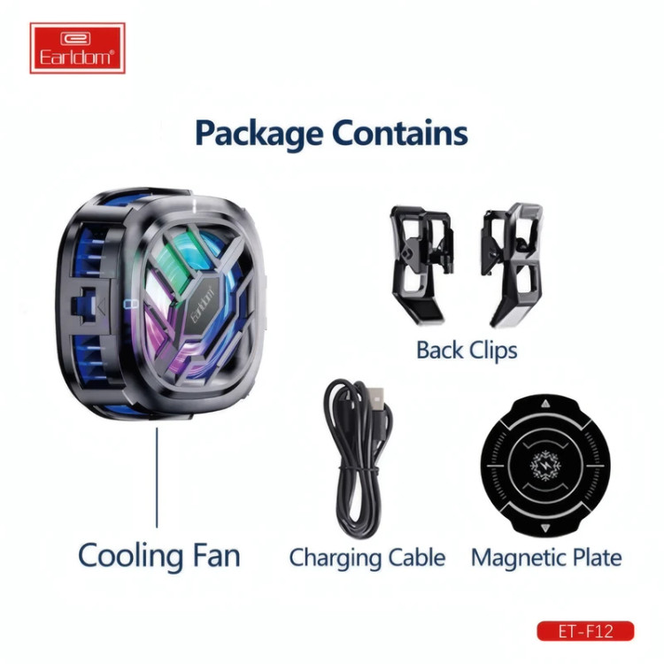 خنککننده موبایل Earldom ET-F12 با عملکرد قدرتمند، دمای گوشی را هنگام بازی، شارژ سریع و استفاده سنگین کاهش میدهد و از افت عملکرد و داغ شدن بیشازحد جلوگیری میکند. انتخابی عالی برای گیمرها و کاربران حرفهای
